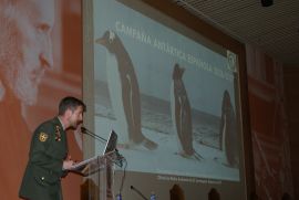 El oficial del área de Medioambiente del XL Contingente Antártico del Ejército de Tierra imparte una conferencia plenaria en el XVI Congreso de Fisiología de la Facultad de Medicina de la Universidad de Zaragoza