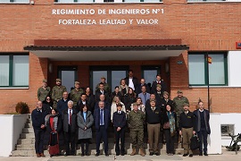 Durante la visita, el Jefe del Regimiento de Ingenieros Nº1, el coronel Miguel Ángel Logroño López, realizó una presentación en la que trató, entre otros asuntos, la misión, la organización y los medios de la Unidad, aludiendo a su diversidad, especificidad y complejidad, haciendo mención especial a la situación actual de transición, en la que se están recibiendo nuevas plataformas y sistemas de armas de reciente entrada en servicio, teniendo que convivir temporalmente con medios ya muy veteranos a los que sustituyen.