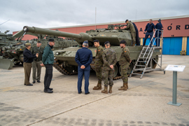 Seguidamente, se ha llevado a cabo una exposición estática de los materiales principales que dotan a la Brigada X que se encuentran entre los más modernos y avanzados tecnológicamente de los que tiene el Ejército y que hacen de esta Brigada una de las más modernas y potentes en la actualidad. A continuación, los componentes del curso han visitado el simulador de torre del carro de combate Leopardo, una instalación para instrucción de las tripulaciones de carro en la que pueden actuar a la vez jefe de carro, tirador y cargador y que se simula muy fidedignamente la secuencia completa del disparo, con selección de objetivo, puntería, carga, disparo y expulsión del culote del proyectil.