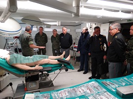 La delegación realizó un recorrido por los módulos de la citada FST, durante la cual, personal destinado en dicha Unidad informó de las capacidades operativas, procedimientos de empleo y del planeamiento de despliegue del HOC. Igualmente, se les mostró las capacidades de la Estación Sanitaria de Defensa NBQ (ESDNBQ).