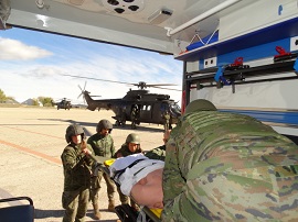 Durante el mes de diciembre, y dentro del marco de adiestramiento conjunto del personal de las Fuerzas Aeromóviles del ET (FAMET) y la Brigada de Sanidad (BRISAN), se llevaron a cabo en las instalaciones del Batallón de Helicópteros de Transporte V (BHELTRA V) las jornadas de actualización de aeroevacuación sanitaria.