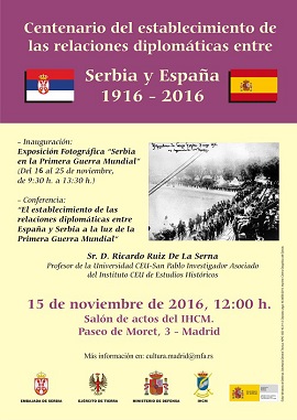 - Centenario del establecimiento de las relaciones diplomáticas entre Serbia y España 1916-2016
