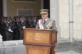A continuación el Excmo. Sr. General de Brigada D. Gabriel Bayarte Aguerrí dirigió unas palabras a los presentes. En su discurso el General agradeció a los profesores de la Academia por su dedicación, entusiasmo e ilusión que depositaron en sus años de formación. Así como a la ciudad de Segovia que les acogió durante sus años de estudios. Seguidamente se dirigió a sus compañeros de Promoción a quienes les expreso el orgullo de los valores inculcados en su formación, el compromiso adquirido, recordando así sus años de esfuerzo y servicio. A los Alumnos que formaba en el Patio, les mostró la importancia de los vínculos afectivos, camaradería y vivencias con los compañeros de Promoción; les transmitió valores como liderazgo, formación continua, lealtad. Finalizó su discurso acordándose de sus familias expresando su gratitud por permanecer en todo momento junto a ellos y entenderles. Teniendo un especial y emotivo recuerdo a los compañeros de promoción fallecidos.