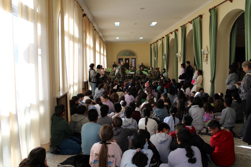 Los alumnos han disfrutado de un concierto didáctico, en la antigua cafetería del “Rufo” ofrecido por la Unidad de Música de la Academia, una actividad diseñada para acercar a los más pequeños al apasionante mundo de los instrumentos y los sonidos. Durante la sesión, los músicos han guiado al público infantil a través de un recorrido sonoro que ha despertado curiosidad, atención y muchas sonrisas.