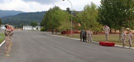 Tras ser recibido por un Piquete de Honores de la Unidad, el General se reunió con los cuadros de mando destinados en esta plaza, y seguidamente efectuó la comida en el Acuartelamiento.