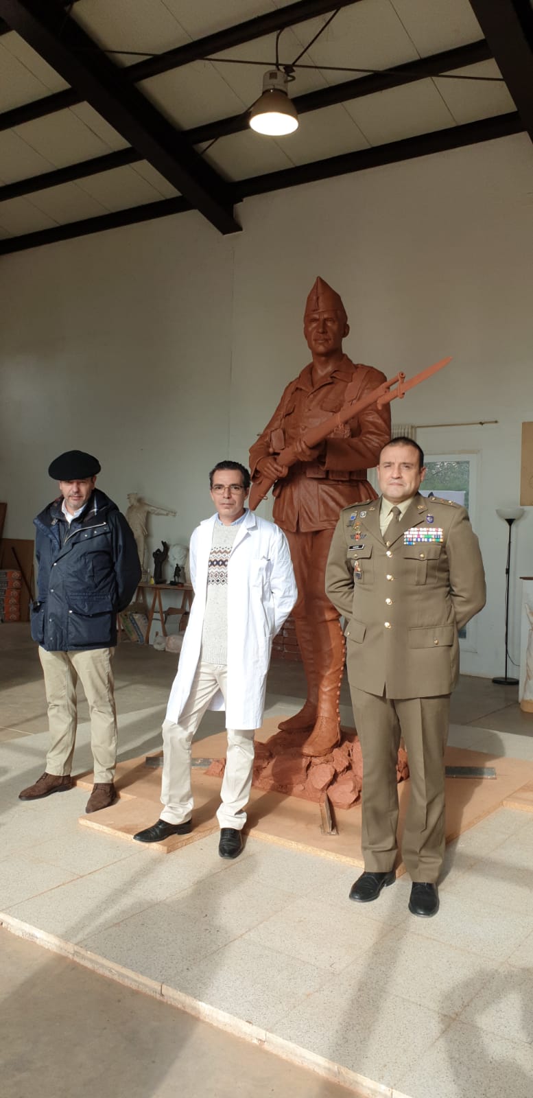 El pintor Ferrer-Dalmau y el escultor Salvador Amaya trabajan juntos en la creación de una estatua conmemorativa del Centenario de La Legión.
