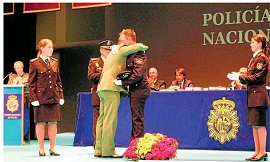 La Policía Nacional celebró ayer su día en Almería marcado por un emotivo abrazo entre Javier Hita, el agente que resultó gravemente herido en la cara durante un servicio, y el cabo Caballero Legionario Enrique González, quien le socorrió durante los primeros momentos de la agresión.