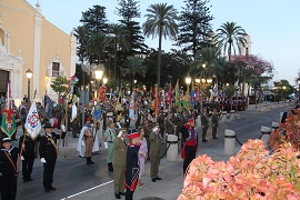Enmarcado en los actos celebrados en la Plaza de Ceuta con ocasión del Día de la Fiesta Nacional, el Regimiento de Ingenieros Nº 7 lideró, el pasado día 9 de octubre, un acto de arriado solemne de bandera y homenaje a los que dieron su vida por España, en el que participaron, además de los guiones y banderines del RING 7, los correspondientes al resto de unidades que integran la Comandancia General Ceuta, así como los de la Unidad de Servicios de Base, Guardia Civil, Comandancia Naval, Policía Nacional y Policía Local.