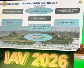 El general Ruiz expone las capacidades acorazadas españolas en la IAVC 2026.