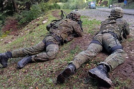 La compañía de Mando y Apoyo del BCZM I/64 se adiestra en montaña.
