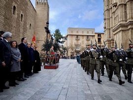 Ante las autoridades civiles y militares más importantes de Baleares, numerosa prensa y televisión, así como un entusiasta público, el Comandante General reiteró la felicitación de SM el Rey e hizo hincapié en las actividades realizadas por las FAS durante 2024. Una formación de dos secciones del regimiento “Palma” 47 y una mixta de la Armada, Ejército del Aire y Guardia Civil, rindieron los honores de ordenanza y protagonizaron el desfile final en el exterior del Palacio de la Almudaina.