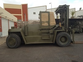 Así mismo y como parte de la preparación del curso, la Compañía de Mantenimiento ha realizado el mantenimiento correctivo de la carretilla autónoma de 20 toneladas, procediendo al lijado y pintado de la misma, corrigiendo así los posibles problemas de oxidación que son tan frecuentes en las islas.