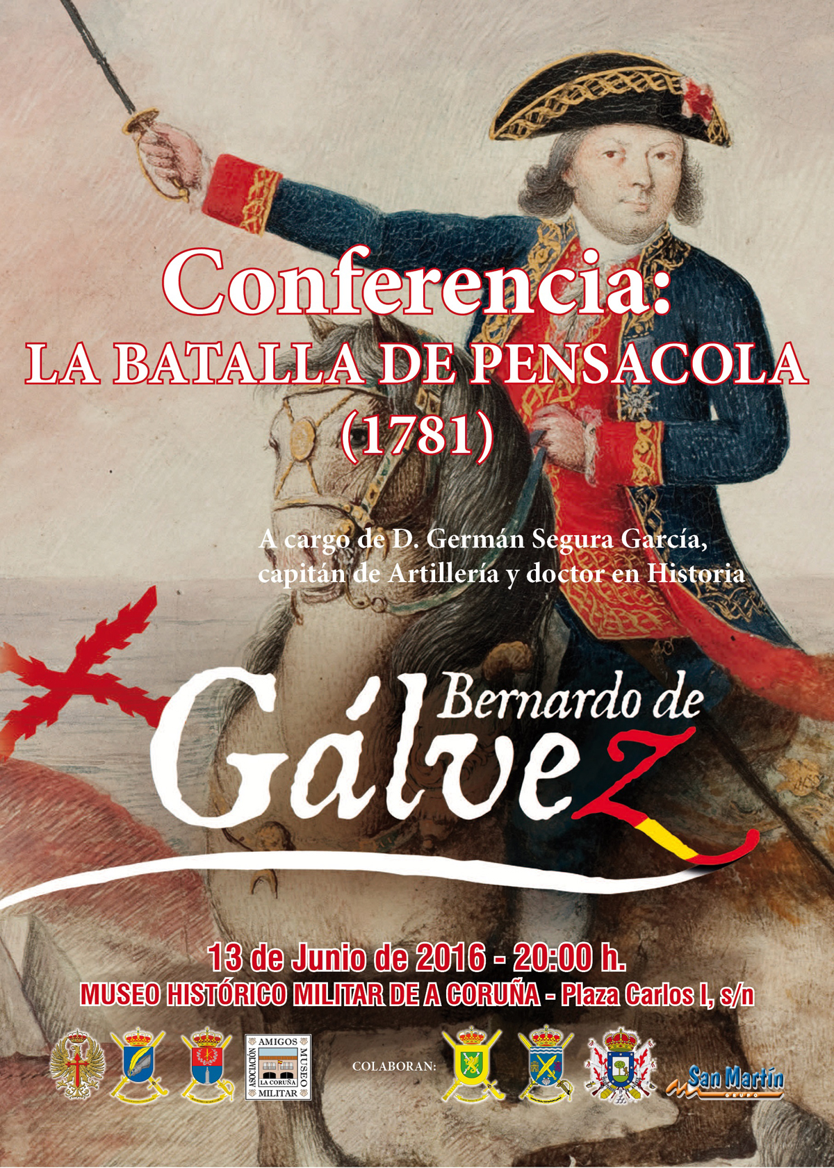 Esta conferencia se enmarca en los actos celebrados en este Museo en honor a Bernardo de Gálvez. Finalmente, cómo broche final, la exposición que, sobre este héroe español fue inaugurada el pasado mes de marzo, será clausurada el próximo día 15 de junio dando por finalizado nuestro homenaje.