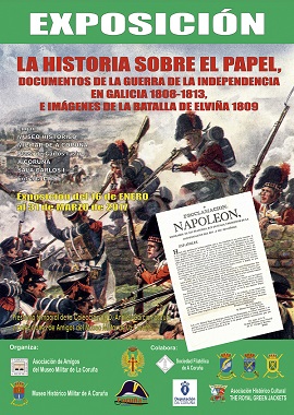 Dentro del programa de Actos conmemorativos del aniversario de la Batalla de La Coruña (Elviña) 1809, el Museo Histórico Militar de A Coruña y la Asociación de Amigos del Museo Militar organizan la exposición "La Historia sobre el Papel. Documentos de la Guerra de la Independencia en Galicia 1808-1813, e imágenes de la batalla de Elviña 1809".