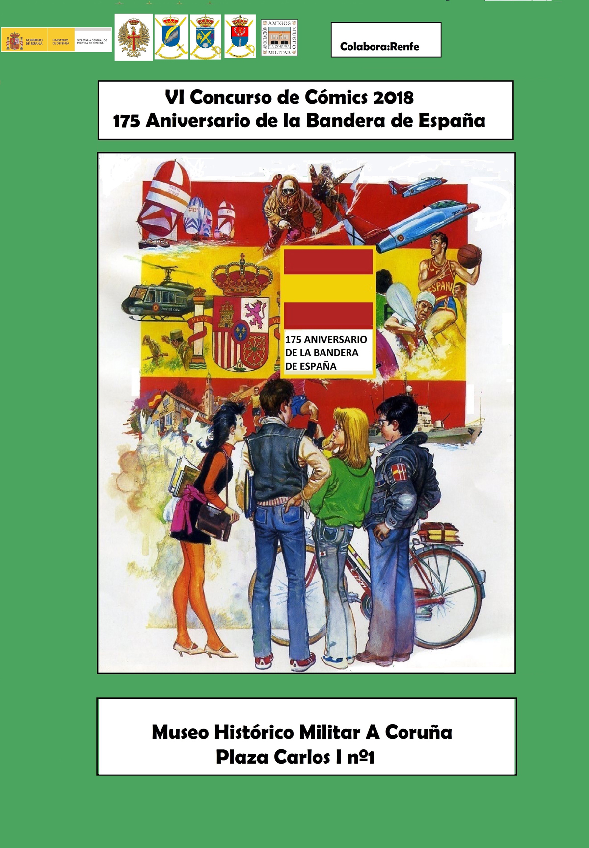 El 19 de abril a las 17:00, tendrá lugar en el Museo Histórico Militar de A Coruña la entrega de los premios del VI Concurso de Cómics de esta Entidad que, en colaboración con la Gerencia de Servicio Público de RENFE en Galicia, lleva por título “175 Aniversario de la Bandera Española”
