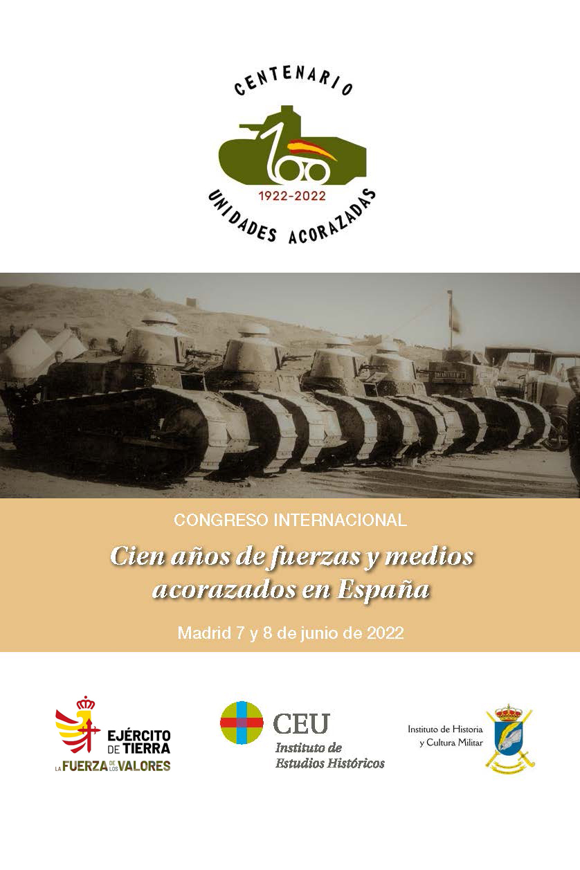Para conmemorar tan importante efeméride, el Instituto de Historia y Cultura Militar y el Instituto de Estudios Históricos de la Universidad San Pablo CEU han organizado el Congreso Internacional: “Cien Años de Fuerzas y Medios Acorazados en España”.