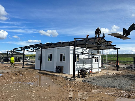 Zona de trabajo: Formada por dos contenedores unidos, generando un espacio diáfano con tomas de corriente, puntos RJ45 y un equipo climatizador. Debido a que el uso que se le va a dar es de Centro de control, el interior de los módulos presenta gran cantidad de enchufes con toma de corriente y de red de los que poder conectar las pantallas y sistemas de seguridad.