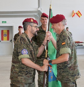 During the transfer of authority ceremony, Colonel Pérez Herrero, commander of CFE IV, presented the HQ NRDC-ESP combat flag to Colonel Puime Maroto, the new commander of CFE IV.
