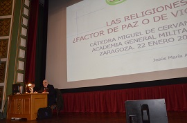 El doctor en Teología de la Fundación Seminario de Investigación para la Paz, Jesús María Alemany Briz, ha impartido una conferencia en la Cátedra Cervantes de la Academia General Militar sobre 'La religión, ¿factor de paz o de violencia?'.