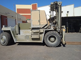 Así mismo y como parte de la preparación del curso, la Compañía de Mantenimiento ha realizado el mantenimiento correctivo de la carretilla autónoma de 20 toneladas, procediendo al lijado y pintado de la misma, corrigiendo así los posibles problemas de oxidación que son tan frecuentes en las islas.