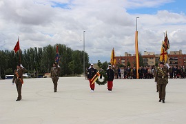 Tras estas intervenciones, tuvo lugar una ofrenda en homenaje a los soldados de todos los tiempos que dieron su vida por España, una corona de laurel fue trasladada por dos soldados con el uniforme de campaña de camillero militar del año 1880, y depositada en el monolito acompañados por los Guiones y Banderines de la formación militar.