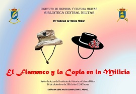 Continuando con esta serie de audiciones musicales de temática militar, la Biblioteca Central Militar presenta su 18ª audición de música militar, en esta ocasión dedicada al flamenco y la copla en la milicia.