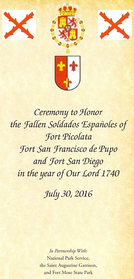 - Ceremonia en honor a los Soldados españoles caidos en Fuerte de Picolata, San Francisco de Pupo y San Diego el año del Señor de 1740