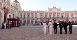 Su Majestad el Rey don Felipe VI ha presidido la reunión extraordinaria de la Real y Militar Orden de San Fernando, la primera y más prestigiosa condecoración militar española, celebrada en el emblemático Palacio Real de Aranjuez. Durante la misma tuvieron un especial reconocimiento los Guiones-Enseña de la Compañía de Mar de Melilla, la Compañía de Mar de Ceuta y el Grupo Naval de Playa de la Armada Española.