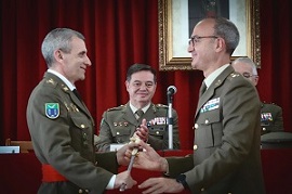 El general de brigada Jefe del Mando de Tropas de Montaña, Francisco Germán Martínez Lozano, ha hecho entrega de la espada-sable española de oficial general cuyo origen data de principios del siglo XX, cerrando la ceremonia de imposición y entrega de los atributos distintivos del generalato.