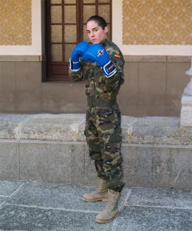 La púgil segoviana compagina su vocación militar con las largas horas de entrenamiento necesarias para mantener el nivel deportivo que acumula. Tras 12 años de servicio, actualmente se encuentra realizando sus cometidos en la Sección de Apoyo a las Instalaciones de la Academia de Artillería.