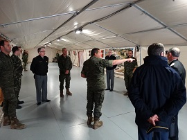 La delegación realizó un recorrido por los módulos de la citada FST, durante la cual, personal destinado en dicha Unidad informó de las capacidades operativas, procedimientos de empleo y del planeamiento de despliegue del HOC. Igualmente, se les mostró las capacidades de la Estación Sanitaria de Defensa NBQ (ESDNBQ).