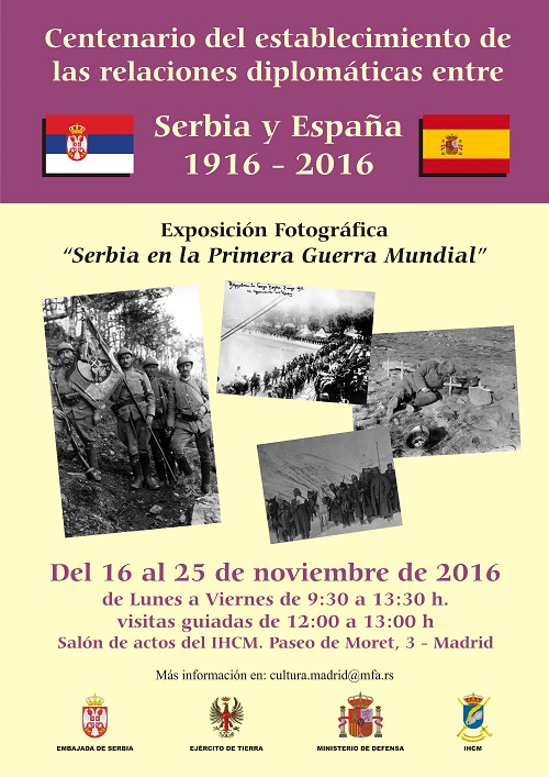 Con motivo del Centenario del establecimiento de relaciones diplomáticas entre Serbia y España, el Instituto de Historia y Cultura Militar ha organizado la exposición fotográfica "Servia en la Primera Guerra Mundial" en la que se dispondra de visitas guiadas gratuitas.