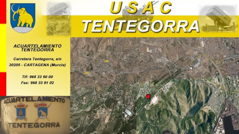 El ACUARTELAMIENTO "TENTEGORRA", está ubicado en la Ctra. Tentegorra, s/n, de la Ciudad Portuaria de Cartagena, CP: 30205, a unos 50 metros de Centro Comercial "EROSKI", en la subida del Parque "Rafael de la Cerda", en esta misma carretera se encuentra la Escuela de Infantería de Marina "General Albacete y Fuster" y el antiguo Hospital Básico de la Defensa.