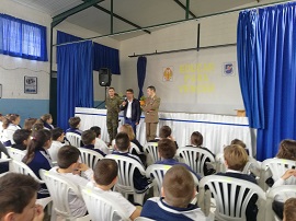 El pasado jueves, 05/04/18 personal de este CG., en concreto los comandantes Salazar y Pinto impartieron unas conferencias en el CEIP “San Pedro Crisólogo” de San Juan de Aznalfarache, sobre los valores del ET y como éstos pueden encajar en el ámbito de la educación; en ellas se hablaron de valores como el “Compañerismo”, “Espíritu de sacrificio”, “Disciplina”, “Honor” y “Valor”, relacionándolos con anécdotas vividas en misiones en el extranjero. El lenguaje y la forma de abordar el tema se intentó adaptar a las edades de la audiencia objetivo