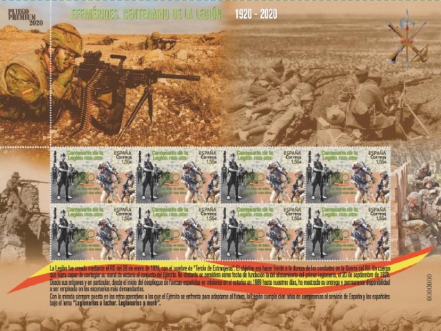 El próximo viernes 9 de octubre de 2020, el Servicio Filatélico de Correos pondrá en circulación un sello dedicado a conmemorar el "Centenario de La Legión. 1920-2020", que podrá ser cancelado con un matasellos específico en la oficina principal de Correos en Ceuta. De esta manera, La Legión contará con dos emisiones filatélicas dedicadas por el correo español, una festejando el cincuentenario, que fue emitida en junio de 1971, y ésta, destinada a conmemorar su centenario.