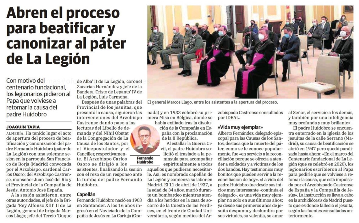El periódico Ideal.es se ha hecho eco del proceso para beatificar y canonizar al páter de La Legión Fernando Huidobro.