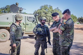 Acompañado del General D. Francisco Javier Romero Marí, Jefe de la Brigada “Extremadura” XI y del Sr. Coronel D. Cesar García del Castillo, Jefe del contingente A/I XI, visitaron el TOC que la agrupación tiene establecido durante el ejercicio, en el cual se realizó una exposición para dar a conocer los detalles de preparación del personal de la agrupación. Posteriormente el General Ruiz Olmos visitó sus instalaciones donde saludó a todo el personal que allí se encontraba desarrollando sus cometidos.