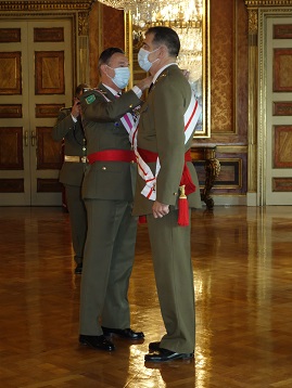 A continuación, el Inspector General del Ejército en su alocución, transmitió la felicitación de S.M. el Rey y expuso el balance del año 2020, en el que, sin descuidar los esfuerzos organizativos y de modernización de los Ejércitos y los compromisos internacionales, las FAS se han volcado en la Operación Balmis en apoyo a la sociedad en su lucha contra la pandemia, que continuará con la Misión Baluarte en el 2021. Terminó sus palabras citando a Ortega y Gasset en su obra, ya centenaria, España Invertebrada, y que “S.M. el Rey nos recuerda que contamos con una sociedad fuerte y un Estado sólido, que no somos un pueblo que se rinda en los momentos difíciles, y que los españoles, unidos y solidarios, somos capaces de ejercer un gran esfuerzo colectivo en el que cada uno dé lo mejor de sí mismo”.