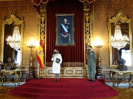 La nueva embajadora ha resaltado, en sus palabras de agradecimiento, su estrecha vinculación con los valores del Ejército, recibidos de su padre, también militar, desde temprana edad. Ha alabado la ejemplaridad del Ejército por la labor desarrollada durante la crisis sanitaria, y ha tenido unas palabras de reconocimiento para los militares desplegados en misiones internacionales.