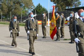 A continuación los nuevos soldados han refrendado su juramento o promesa desfilando ante las enseñas nacionales del Regimiento CASTILLA Nº 16 de guarnición en Badajoz, y la propia del CEFOT 1, que fuera donada por la ciudad de Cáceres en el año 2014.