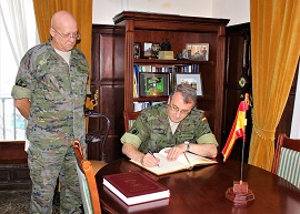 Fue recibido en el Cuartel General por el COMGE, Luis Cebrián, que le expuso las características más relevantes de Ceuta, y firmó en el Libro de Honor.