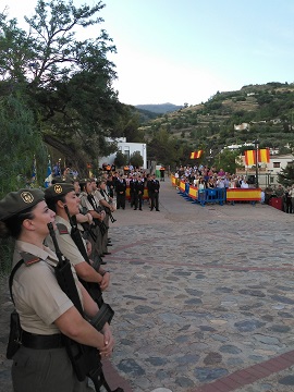 Se trató del Homenaje a la Bandera que tuvo lugar al atardecer del viernes 3 de junio en el mirador Federico García Lorca, desde el que se tiene una espectacular vista sobre el valle del Guadalfeo. Presidido por el general Carlos Castrillo, secretario general del MADOC, consistió en el izado de la enseña, a cargo de dos niñas de la localidad y dos miembros del Mando, y un posterior acto de recuerdo a los caídos. Los honores corrieron a cargo de un piquete de la Unidad de apoyo del MADOC y participaron los guiones y banderines del Mando en Granada.