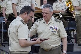 Al finalizar el concierto, el Comandante General entrego un obsequio al más antiguo de los representantes de la Unidad de Música del Mando de Canarias, en agradecimiento por su apoyo para este concierto.