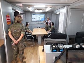 Han tenido igualmente la oportunidad de visitar el puesto de mando avanzado para situaciones de emergencia (que tanta notoriedad acumula en los desastres que hemos presenciado últimamente), el cual se ha desplegado para tal ocasión en el complejo de la Plataforma logística de Zaragoza (PLAZA), donde el personal responsable del mismo les ha ilustrado y ha aportado ejemplos de su dilatada experiencia en este tipo de situaciones de emergencia.