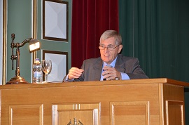 El General Blas Oliver ha pronunciado la ponencia inaugural del ciclo conferencias de la Cátedra Cervantes 2017-2018 haciendo un repaso de los 90 años de historia de la estancia de la AGM en Zaragoza. En su intervención ha destacado de los primeros años de funcionamiento la importancia que tuvo la figura del Coronel Miguel Campins como Jefe de Estudios, al que se le atribuyen muchos de los avances pedagógicos que se aplicaron en el centro.