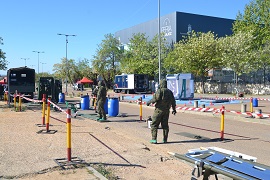 Todo esto no era mas que un simulacro. Con él que se pretendía evaluar esos protocolos de actuación ante este tipo de accidentes y comprobar que los medios y personal disponible son efectivos y suficientes para garantizar la correcta evaluación del siniestro, el control de los riesgos y garantizar la seguridad de las personas y el medio ambiente. Y es aquí cuando aparece en juego los medios NBQ que el Ministerio de Defensa tiene. Al ser alertada la UME y conocedora de los medios y capacidades la Compañía de NBQ 11 del BCG XI, como elemento de actuación en la zona del incidente, se activa la misma, dejando el pabellón de la Brigada “Extremadura” XI en todo lo alto, entre los intervinientes españoles y portugueses, siendo felicitados por la Dirección del Plan TRANSCAEX y RADIOCAEX.