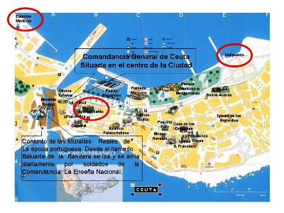 La Comandancia General de Ceuta, se encuentra situada en el corazón de la ciudad, en plena Plaza de África, pilar básico de la ciudad. En su centro se encuentra el monumento a los caídos en la Guerra de África de 1859-60. Aquí se encuentra la Catedral, el Santuario de Santa María de África, el singular edificio del Ayuntamiento,el edificio de la Comandancia de Ceuta y el Hotel la Muralla.