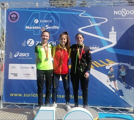 Del mismo modo, el pasado domingo 23 de febrero, la teniente se alzó con la victoria al cruzar la meta en un tiempo de 02:47:50 en el Campeonato Nacional Militar de Maratón celebrado paralelamente con la 40 edición de la Maratón de Sevilla, logrando la clasificación para el Campeonato Mundial Militar de Maratón a celebrar en Washington el próximo mes de octubre.