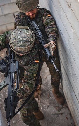 En la zona de combate en población de “Legua” se practicó el avance tanto en interiores como en exteriores, además de la entrada y limpieza de habitaciones. Para ello, se hizo especial hincapié en ejercicios de doble acción en los que recreaban enemigos de distinta entidad y nivel de instrucción.