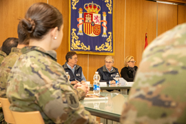 La jornada ha comenzado con la recepción por parte del general jefe de la Brigada 'Guzmán el Bueno' X (BRIX), Fernando Ruiz, de la comitiva del OVM, en un acto protocolario en la entrada a la base. A continuación, el general jefe de la BRI X ha expuesto una presentación, en la sala 'Gran Capitán' en la que ha destacado la importancia de la jornada y los temas que se iban a tratar.